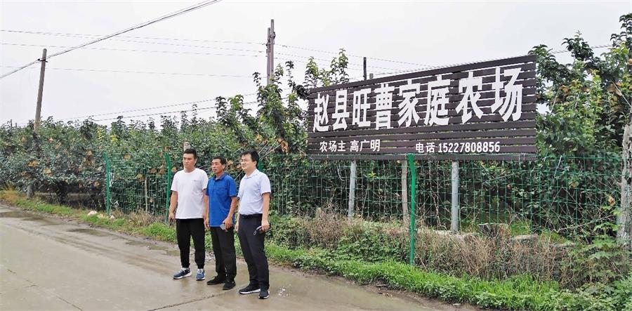 在趙縣旺曹家庭農場,大家仔細查看梨果長勢,聽農場主高總介紹有機富硒梨的管理經驗。高總的富硒香梨、秋月梨口感脆爽,甘甜多汁,入口即化,每年臨近上市都預定一空。高總介紹,今年離上市還有一個多月,已經預定了80%。