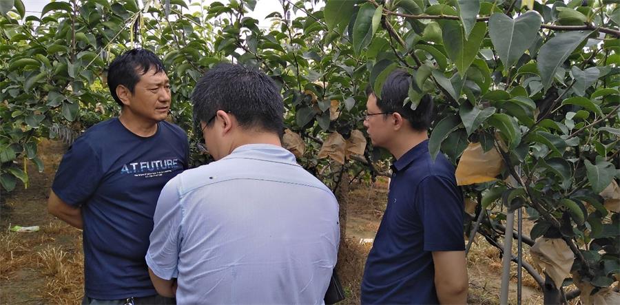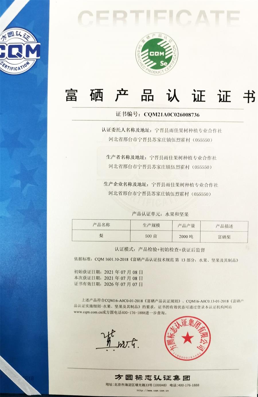 在寧晉縣,雨佳果樹種植專l業合作社負責人霍總向羅總和于總一行詳細介紹了果園品種分布,分批上市時間。雨佳合作社是該市智慧農業應用示范點,產品多次獲得京津冀果品爭霸賽金獎。在霍總的帶領下,雨佳合作社在通過歐盟質量認證體系基礎上又與中國地質大學(武漢)國際硒科學與產業發展研究院合作,將有機、富硒、酵素三效合一,研發了富硒梨果產品,已經連續兩年獲得第三方機構的“富硒產品認證證書”。去年有200余mu富硒梨果被香港某大型超市提前批量訂購。非常巧合的是,今年香港客商也在同一天來到了霍總的富硒梨基地,商定今年的采購計劃。