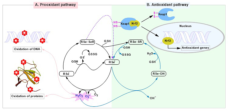 圖3. 含硒化合物ROS清除和ROS誘導(dǎo)作用的機(jī)制