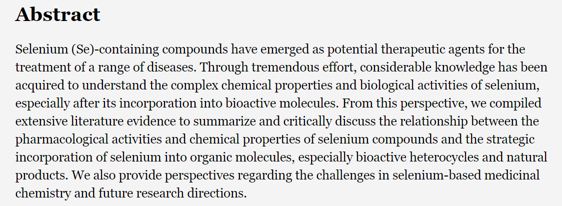 圖2. 硒的化學(xué)性質(zhì)與其藥物化學(xué)生物學(xué)性質(zhì)的聯(lián)系。圖片來源:J Med Chem